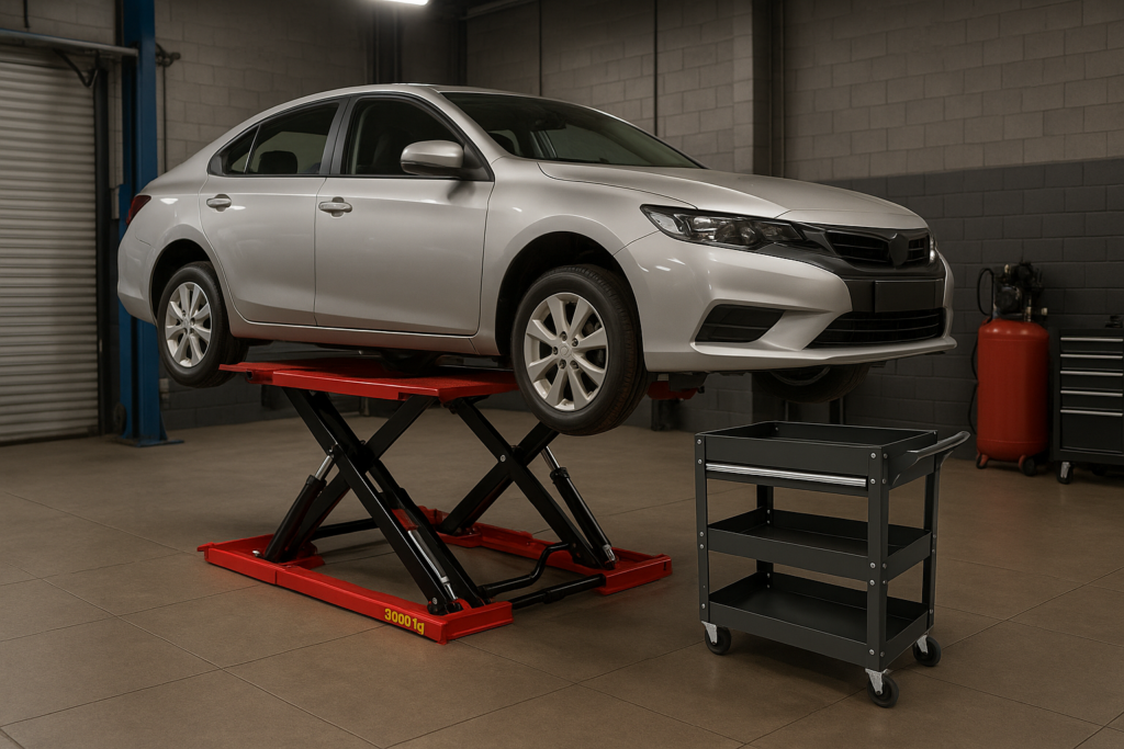 🚗 Giải Pháp Thiết Bị Garage Ô Tô Hiện Đại – Xe Đẩy Dụng Cụ & Cầu Nâng Cắt Kéo 3000kg